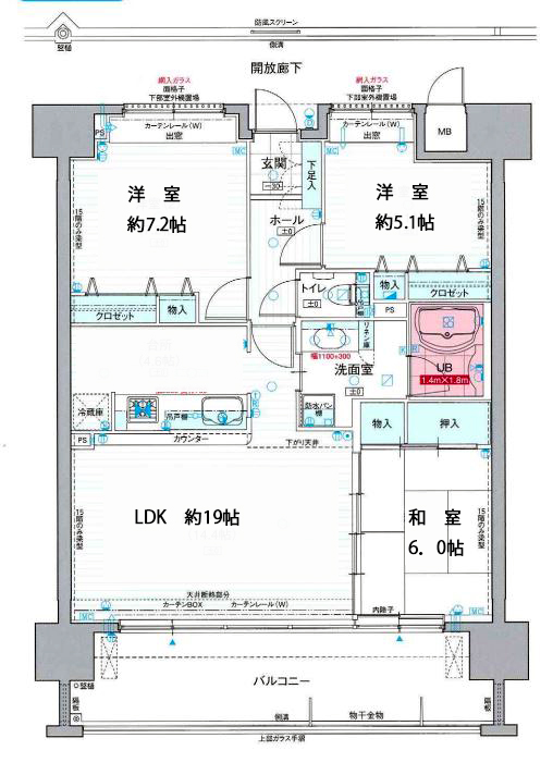 洋室約7.2帖・洋室約5.1帖 LDK約19.0帖