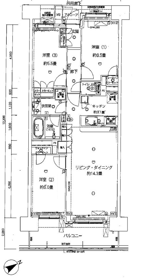 3LDK(LDK約17.4帖・洋室6.5帖・洋室約5.5帖・洋室約6.0帖)専有面積75.41平米