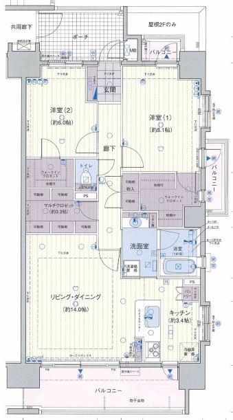 最上階 東南角部屋。専有面積 80.4㎡ ウォークインクローゼット・マルチクローゼット付。