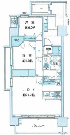 専有面積80.46平米・10階角部屋 (洋6.0・洋室約7.0(WIC付)・LDK約21.7帖)