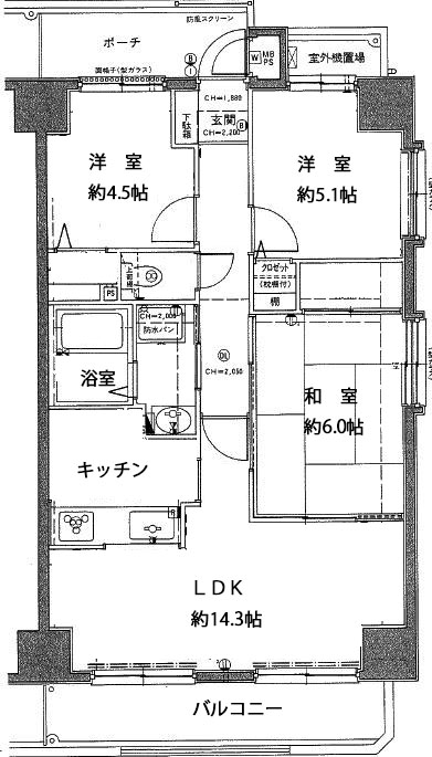 ナイスアーバン中央公園 1290万円(3LDK)専有面積64.89m2(壁芯)