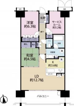 リビング約16.3帖帖、洋室約6.3帖、洋室約5.2帖、和室約4.5帖。