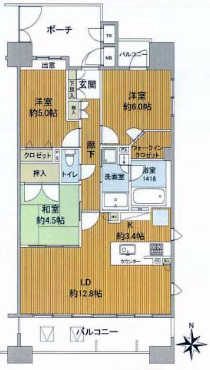 専有面積 73.44㎡ LDK約16.2・洋室6.0・洋室約5.0 和約4.5