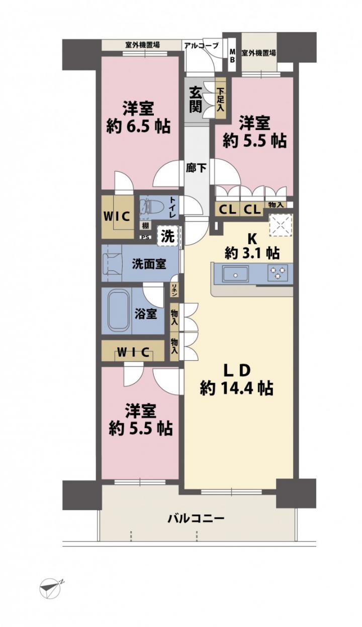 ・3LDK(LDK約17.5帖・洋室5.5帖・洋室約6.5帖・洋室約5.5帖)専有面積76.60平米