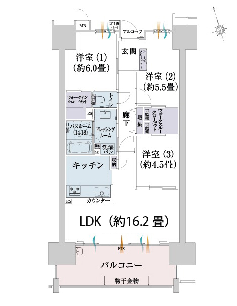 壁芯 74.52㎡ ( LDK約16.2・洋 6・5.5・4.5 )