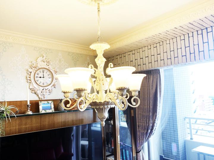 モールディングと梁の装飾タイルがより上質な空間を演出してます。